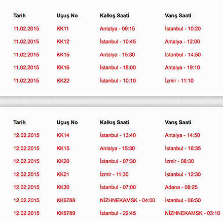 Şirketin iptal ettiğini seferler şunlar: