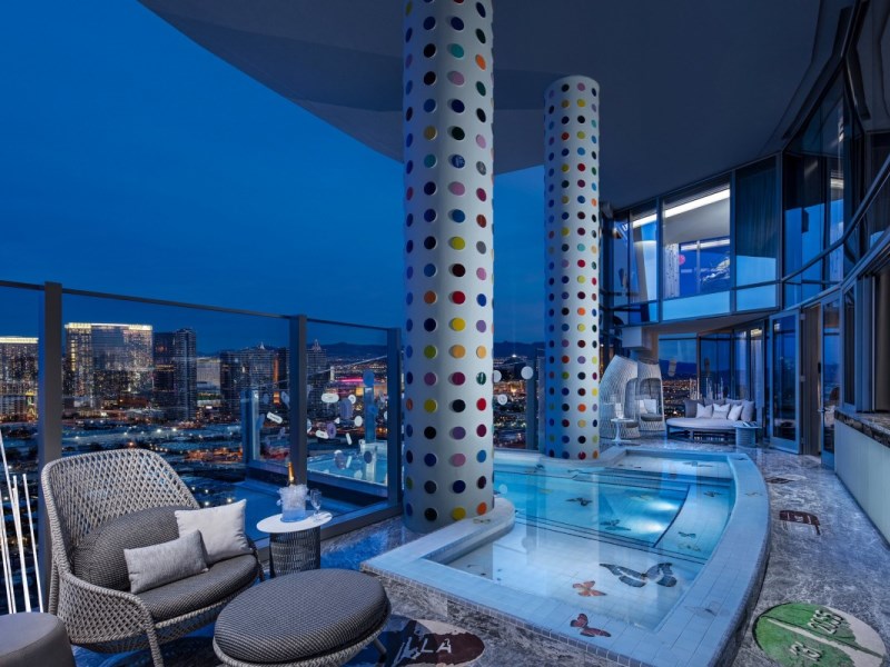 Palms Casino Resort için Mimar Damien Hirst tarafından tasarlanan Sky Villa, gecelik fiyatı 100 bin dolarlık fiyatıyla Dünyanın en pahalı otel odası olma özelliğine sahip.