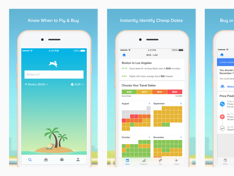 Apple ve Android işletim sistemine sahip telefonlardan indirebileceğiniz Hopper isimli uygulama size uçak bileti almanın en uygun zamanını söylüyor. Tabii ki fiyata göre !