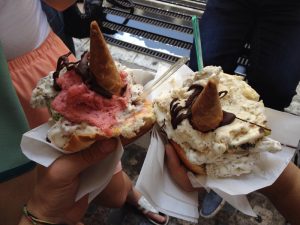 İlk gördüğünüzde ”Ekmek arası dondurma mı o?” diyebileceğiniz ama tadını aldığınız zaman da vazgeçemeyeceğiniz muhteşem bir şey ”Brioche Siciliana con Gelato”. Sicilya’ya gittiğinizde denemeden dönmemeniz şiddetle tavsiye edilir. Özellikle Palermo’daki ”Brioscià Gelato” hem dondurma hem de ‘Brioche Siciliana con Gelato” konusunda gayet başarılıdır.