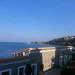 İkinci gün bitişikteki Hotel Molyvos’a yerleştik. Burası da deniz kenarında, önünde çam ağaçlarının altında plajı olan bir otel. Fiyatı da aynı,60€. Yalnız,plajda şezlong parası olarak 2,5 € alıyorlar. Bizim pek hoşumuza gitmedi bu durum. İkinci gün kaldığımız Hotel Molyvos önceki otele göre biraz daha modern.