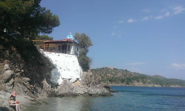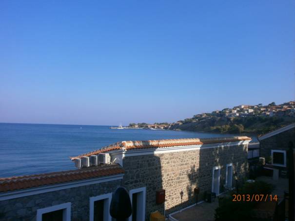 Molivos’ta deniz bizim kuzey Ege sahillerine benziyor. Plaj taşlık, deniz soğuk ve pırıl pırıl masmavi.