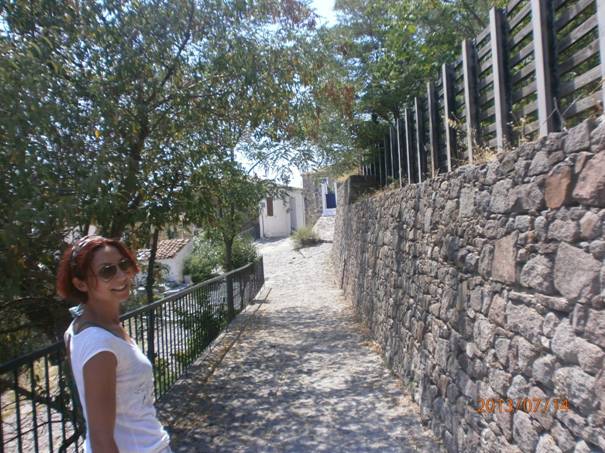 1,5 saat sonra Molivos’a ulaştık. Burası koni gibi bir tepeden denize kadar inen eski bir yerleşim yeri. Tepenin en üstünde heybetli bir kale var. Denizden yukarıda setüstü gibi bir yoldan ilerlerken arabayı parkettik. Otel araştırması için yürüyerek deniz kenarına indik. Yaz mevsiminde deniz tatili için deniz kıyısındaki otellerde kalınmasını tavsiye ederiz.