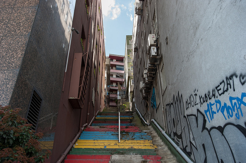 Normalde bu kareyi de çekmem ama bunun kavgası yapıldı, yemedi içmedi zabıtalar bu merdivenler gibi merdivenleri griye boyadı. Halk o kadar sıkılmıştı ki artık renk istiyordu ve boyadı. Bunu kayda almak belki gereklidir?