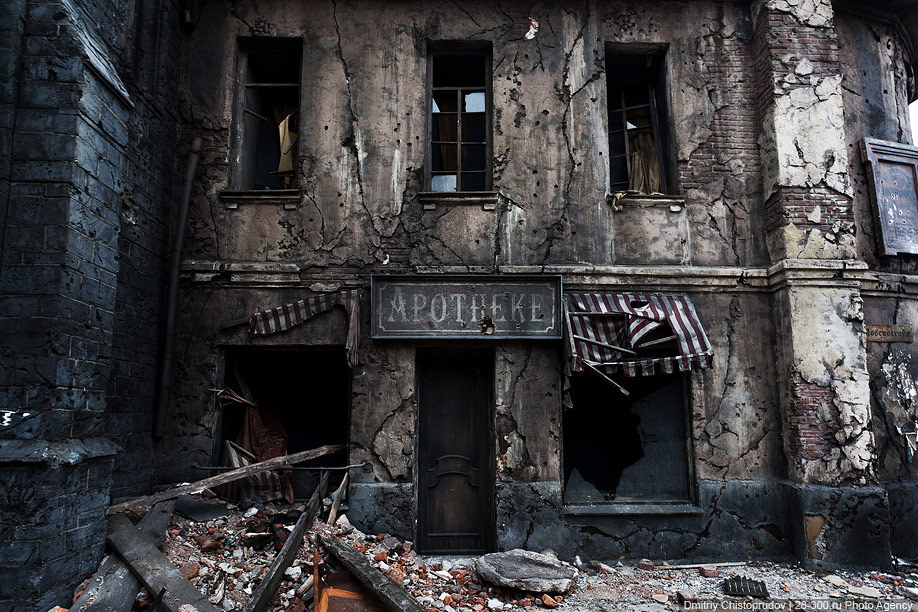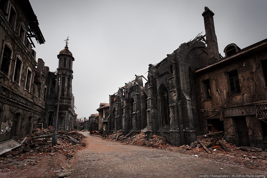 Chistoprudov’un belgelediği ve kendi Live Journal sitesi üzerinden paylaştığı bu harap edilmiş hayalet şehir, aslında “Rus Hollywood’u” tarafından inşa edilmiş olan, devasa bir sahte dekor olma özelliğini taşımaktaydı. Mosfilm, Avrupa’daki en büyük ve en eski film stüdyosu ve Rus film sektörünün tartışmasız lideri olma özelliğini taşıyor. Sovyetler Birliği’nin dağıldığı dönemde Mosfilm, en geniş çapta övgülere konu olan Sovyet dönemi filmlerini, Red Western’leri (Sovyetler’de çekilen Western film uyarlamaları), Tarkovsky’nin çalışmalarını ve Savaş ve Barış gibi destansı eserleri de içinde barındıran 3,000’den fazla filmin yapımcılığını gerçekleştirmişti.