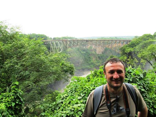 Patikalardan biraz ilerlediğimizde zambia ya giden her gezginin beklediği dakika veya görüntü ile karşılaşıyorsunuz. Zambezi nehri üzerinde kurulu olan köprü.Bu köprü zambia ve Zimbabwe sınırı.Görüntüsü muhteşem. Çok güzel fotoğraf veriyor .Üzerinde adrenalin sporlar yapılıyor.Biraz sonra köprünün üzerine çıkacağız, tekrar şelaleye dönüyoruz. İki dağ arasına küçük bir köprü yapmışlar takribi 50mt. Islana ıslana oradan karşıya geçiyoruz.Bu tarafta su bulutu daha az ,daha iyi ve daha rahat foto alınıyor.Bir tarafta güzel bir yeşillik diğer tarafta dökülen suyun yarattığı gürültü.Yağan yağmur ıslanan biz mutlumu mutluyum….Kendimi çok iyi hissediyorum.Artık şelale turumuz bitti ,köprüye gitme zamanı
