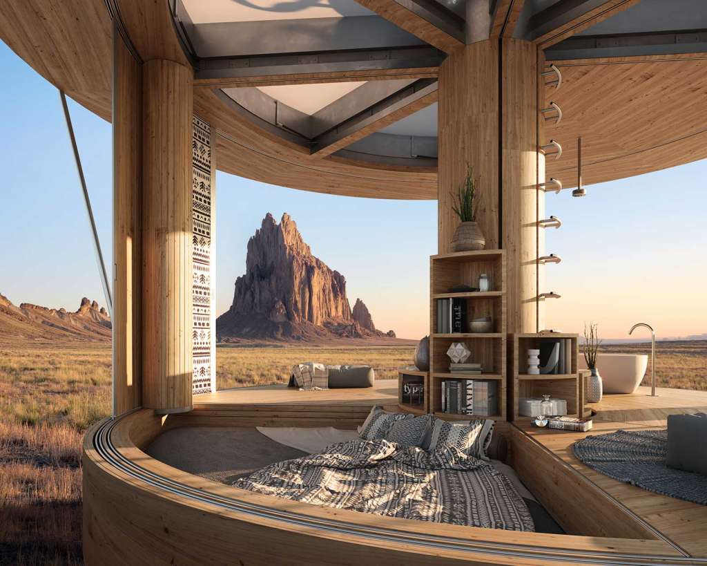 Kompakt olmasına rağmen, 290 metrekarelik iç mekanı, iki yatak odası, bir banyo ve oturma alanı bulunan bir otel odasının tüm lükslerine sahiptir.