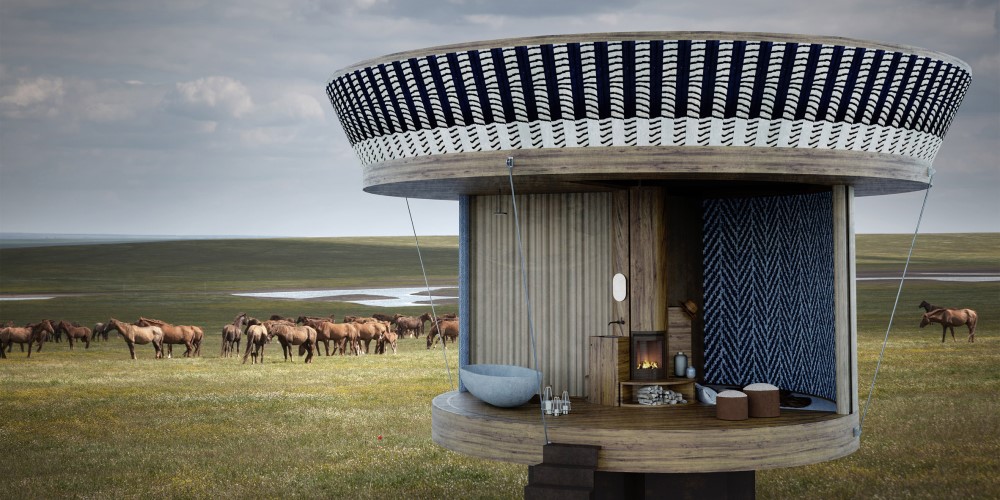 Küçük ahşap yapı duvarları ve tavanı açılıp kanabilir ve etrafını çevreleyen manzaraya sahip olabilirsiniz.