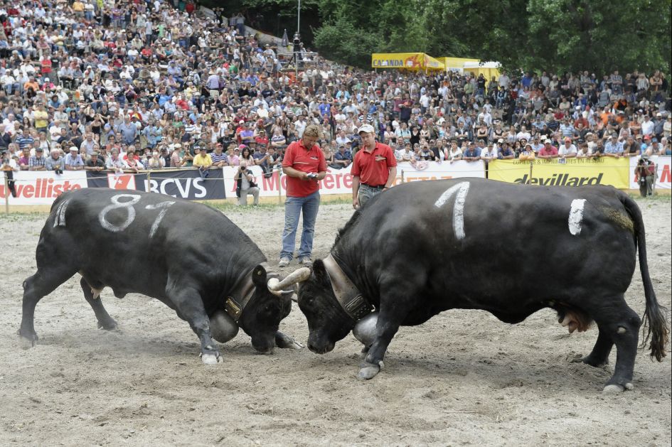 Combat des Reines Festivali; Ekim ayının ilk haftasında İsviçre’de kutlanıyor. İsviçre’nin Valais bölgesi, kayak pistleriyle ünlü. Bu pistlerde toplanan inekler, aralarından bir ‘‘kraliçe’’ seçmek için birbirleriyle kavga ettiriliyor. İnekler birbirlerini boynuzlarıyla kitliyor, toynaklarıyla birbirlerine darbeler vuruyor ve kavganın sonunda kraliçe belirleniyor. Bu ritüel yüzyıllardır var olsa da; Valais çiftçilerinin de 1920‘lerden beri buna benzer bir dövüş düzenledikleri biliniyor. İyi mücadele eden ineğin, en iyi sütü vereceğine, genetiklerinin iyi olduğuna ve etinin lezzetli olacağına inanılıyor.