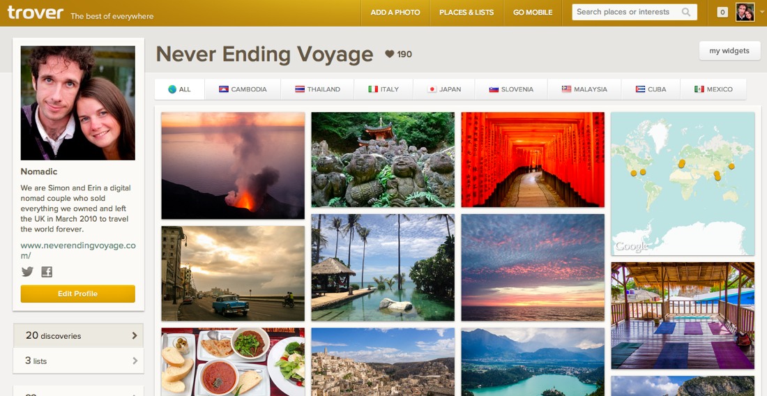 Trover, mobil ve masaüstünde resimlerle seyahat rehberi hizmeti veren ve kullanıcılarına seyahatleriyle ilgili fotoğraf ve bilgi paylaşmasına olanak sağlayan bir uygulama.