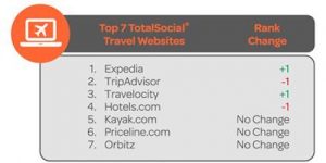 Listede ilk sıraları Expedia ve TripAdvisor aldı. Rapor, Haziran 2007’de yayınlanan bir önceki sıralamadan sonra, son altı ay içindeki sosyal sohbetleri ölçerek her bir seyahat sitesinin marka itibarını değerlendiriyor.