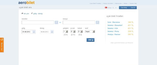 3. Aerobilet…: “Uçak bileti almanın en hızlı yolu” sloganı ile yola çıkan Aerobilet, bu söylemini doğrular niteliğindeki sitesi ile oldukça hızlı bir şekilde uçak bileti bulup satın almanızı sağlıyor. Yaklaşık 20 yıllık tecrübelerini ve yenilikçi vizyonlarını aerobilet.com aracılığı ile 7/24 sunmaktadırlar. 3D secure özellikli online ödeme panelleri sayesinde güvenli bir şekilde alışveriş yapabilirsiniz. Düşük maliyetli hava yolu firmalarını, Avrupa uçak biletlerini, Rusya ve BDT ülkelerine ucuz uçak biletlerini bulabileceğiniz geniş tarama ve filtreleme seçeneği ile sunmaktadır.