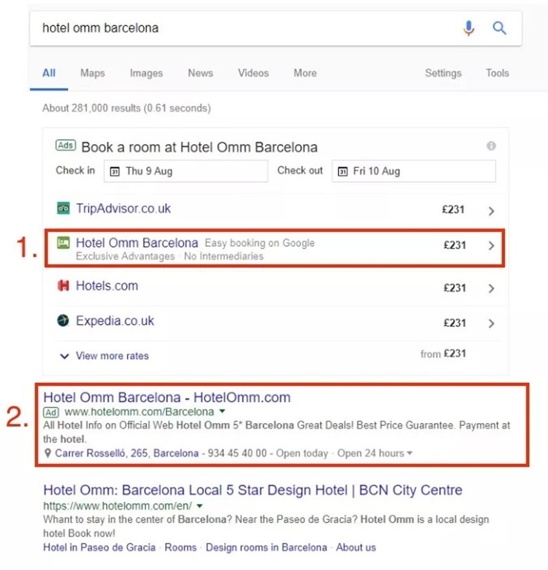 Görünüşe göre, en azından şimdilik, değişiklik esasen masaüstü kullanıcıları etkiliyor. Çünkü Google Otel Reklamları, hâlâ AdWords’ün altında olmasına rağmen mobil cihazlarda yapılan aramalarda önemli bir yere sahip.