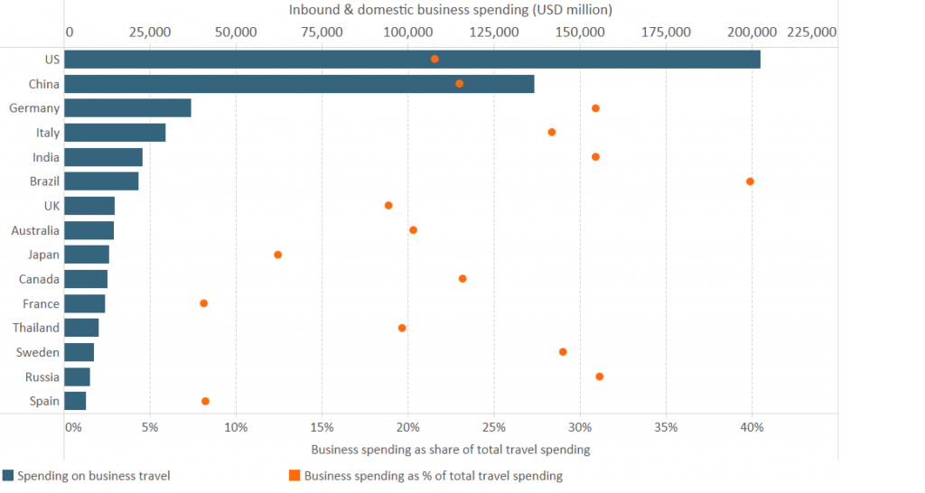 İş gezisi endüstrisi multi milyar dolarlık bir endüstri. Global Business Travel Association bu sektör için harcanan paranın %5.8 artış oranıyla 2020 yılında 1.6 trilyon dolara ulaşacağını tahmin ediyor. İş gezisi yapan kişiler otel odalarını haftaiçi doldurmakta, haftasonunu tercih edenler ise genelde iş gezisi için değil iş amacı dışında gezen kişiler.