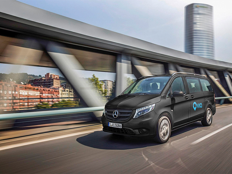 Alman otomotiv şirketi, ABD merkezli bir start-up olan Via ile, Mercedes-Benz’in ürettiği minibüsleri ve Via’nın halihazırda New York, Chicago ve Washington D.C. gibi şehirlerde kullanımda olan teknolojisini kullanacak ve talep üzerine çalışacak olan bir araç paylaşımı servisi için ortaklık kurdu. Via yetkilileri, bu servisi, yoğun kentsel alanlarda trafiği hafifletmeye yardımcı olacak dinamik bir toplu taşıma sistemi kurmak amacıyla kullanmayı umut ediyor.