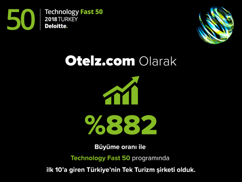 Dünyaca ünlü Deloitte Denetleme firmasının 1995 yılından beri 37 ayrı ülkede oluşturduğu Teknoloji Fast50 listesine 2018 yılında 1 milyondan fazla kişinin rezervasyon gerçekleştirdiği Otelz.com 7. Sıradan girdi.