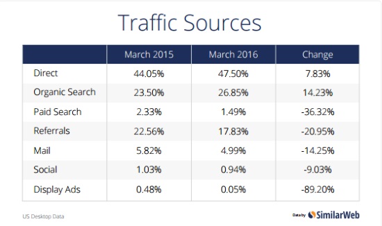 Mart 2015 ile 2016 arasındaki akışlarında %18 lik bir düşüş olsa dahi sektördeki en önemli 25 websitesinin yarısından biraz fazlasında (%54) bir akışın mevcut olduğu açıklaması yapılmış.