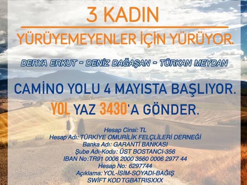 Tamamen kendi imkanları ile yaptıkları bu gezi esnasında Türkiye Omurilik Felçlileri Derneği ile yürütülen ortak bir çalışma ile sosyal medyada yürüyüşlerini paylaşırken tanıdık, tanımadık tüm herkesten YOL yazıp 3430’a Sms göndermelerini talep ediyorlar. Yolculuk sonunda toplanan Sms’lerle akülü tekerlekli sandalye alınarak ihtiyaç sahiplerine kendi elleriyle teslim edebileceklerini belirtiyorlar.