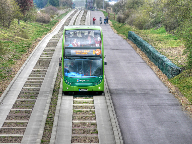İngiltere’de Cambridge, Huntingdon ve St.Ives arasında yeni bir otobüs türü hizmete alınmış. Bu otobüsler tren yoluna benzeyen özel olarak yapılmış bir yolda gidiyorlar. Yolu başka araçlarla paylaşmadıkları için de hedefe hızlı…
