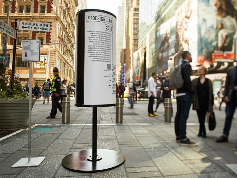 2018’de başlatılan NYCxDesign festivali, insanların ziyaretleri sırasındaki deneyimlerini nasıl daha iyi geliştirebileceğini araştıran yeni bir girişim. Times Square Tasarım Laboratuvarı (TSqDL), kamusal alana yeni olanaklar sunmayı amaçlayan NYC tabanlı tasarımcılar tarafından beş tasarım konseptini sunan açık bir aktivasyon. NYCxDesign haftası boyunca Times Square’e gelen ziyaretçiler, her prototipi kullanma ve test etme fırsatına sahipler. Koleksiyon, halka açık oturma, yol bulma ve kültüre erişim konularında yeni fikirler sunuyor.