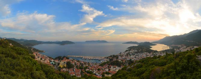 Akdeniz kıyısında yemyeşil tepelerin eteğinde yer alan, bozulmamış doğasıyla şirin bir balıkçı köyü olan Kaş, doğal güzelliklerin yanısıra popüler bir turiz merkezidir. Dağların bu bölgede oldukça dik olmalarından dolayı geçmişteki izleri günümüze kadar bozulmadan getirebilmiş ve bozulmadan yaşamına devam etmekte. Kaş’ın daracık sokaklarına dalıp nostalji yaşayabilir, kafelerinde oturup limonatınızı yudumlayabilir, limandaki tavernalarına oturup yunan müzikleri eşliğinde uzonuzu yudumlarken muhteşem deniz ürünlerini tadabilirsiniz.