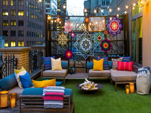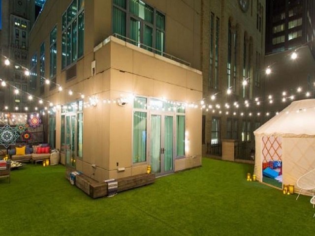 Yüksek katlı binalar ve gökdelenlerle çevrili otelin terasına kurulmuş 3.5 metre yüksekliğinde yurt çadırı, lambalar ve hasır sandalyelerle çevrelenmiş halde. Renkli yastıklar sizi divanda rahatlatırken ateş yakabileceğiniz bir düzenek de mevcut. Ancak doğadakinin aksine bu ateş kav ve çakmak taşı ile değil açma/kapama düğmesiyle yakılıyor.
